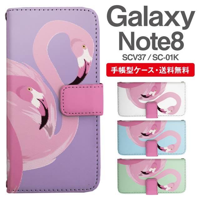 スマホケース 手帳型 Galaxy Note8 ギャラクシー SC-01K SCV37 携帯ケース カバー 送料無料 フラミンゴ アニマル 動物 agesugi_ssm