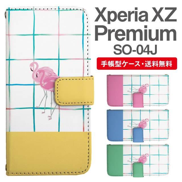 スマホケース 手帳型 Xperia XZ Premium エクスペリア SO-04J 携帯ケース カバー 送料無料 フラミンゴ アニマル 動物 agesugi_ssm