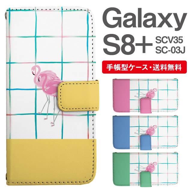 スマホケース 手帳型 Galaxy S8+ ギャラクシー SC-03J SCV35 携帯ケース カバー 送料無料 フラミンゴ アニマル 動物 agesugi_ssm
