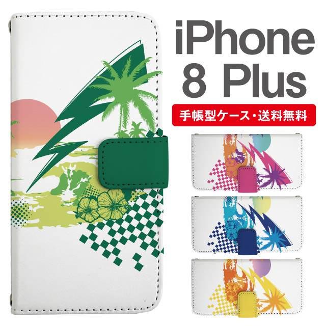 スマホケース 手帳型 iPhone8Plus アイフォン 携帯ケース カバー 送料無料 トロピカル ハワイアン ビーチ柄 agesugi_ssm