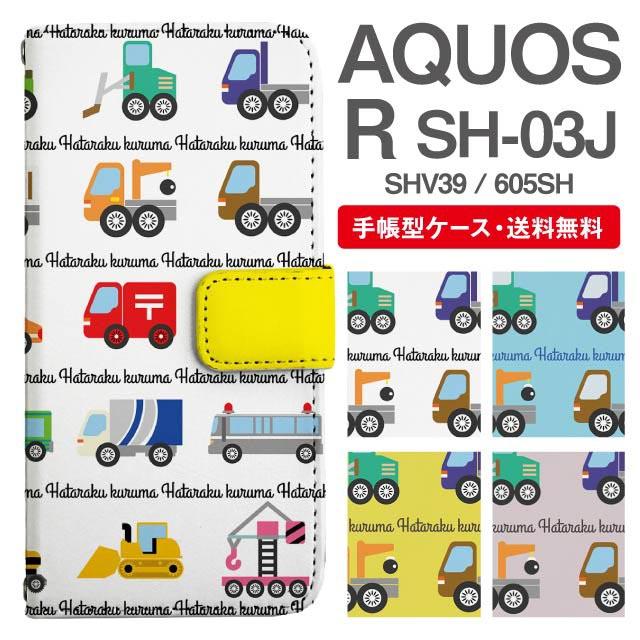 スマホケース 手帳型 AQUOS R アクオス SH-03J SHV39 605SH 携帯ケース カバー 送料無料 乗り物柄 はたらくくるま agesugi_ssm
