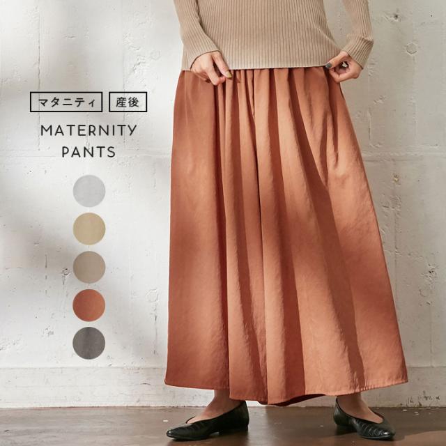 授乳服 マタニティ 服 パンツ 産前産後対応 ピーチ素材ギャザーパンツ 裾が床につかない機能付き 妊婦服 長袖 マタニティパンツ