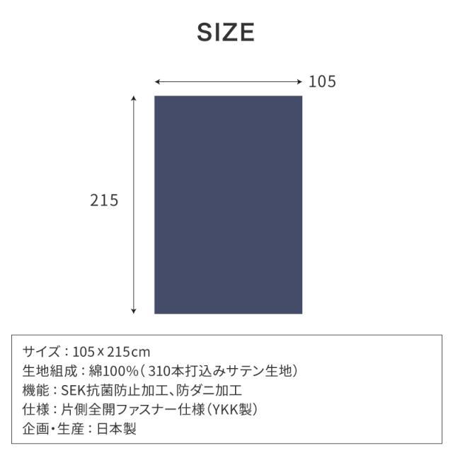 敷布団カバー シングル 綿100% 純国産 ダニコマールプレミアム敷布団カバー 抗菌防臭加工 シングルサイズ 105×215cm