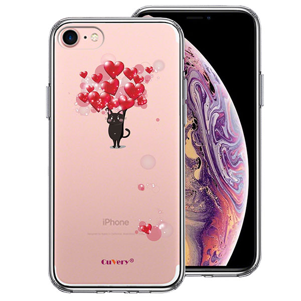 iPhone7 ケース ハードケース ハイブリッド クリア 猫 ネコ にゃんこ ハート いっぱい 黒猫 アイフォン カバー スマホケース