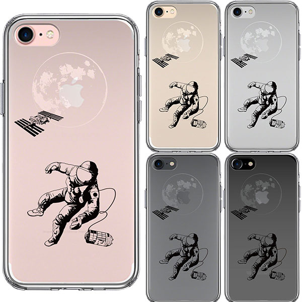 iPhone7 ケース ハードケース ハイブリッド クリア 宇宙飛行士 地球 アイフォン カバー スマホケース