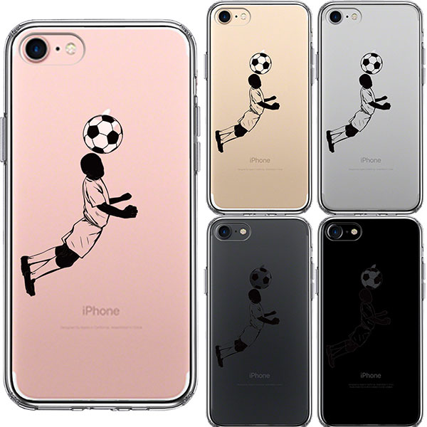 iPhone7 ケース ハードケース ハイブリッド クリア サッカー ヘディング 男子 黒 アイフォン カバー スマホケース