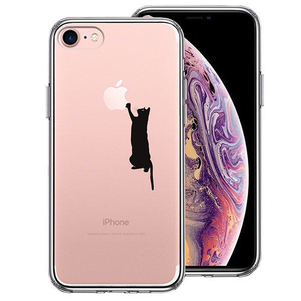 iPhone7 ケース ハードケース ハイブリッド クリア 猫 にゃんこ 玉遊び ブラック アイフォン カバー スマホケース