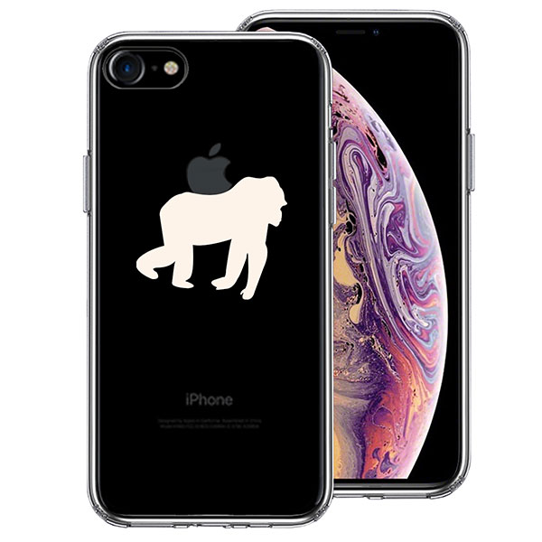 iPhone7 ケース ハードケース ハイブリッド クリア ゴリラ りんご 運搬中 ホワイト アイフォン カバー スマホケース