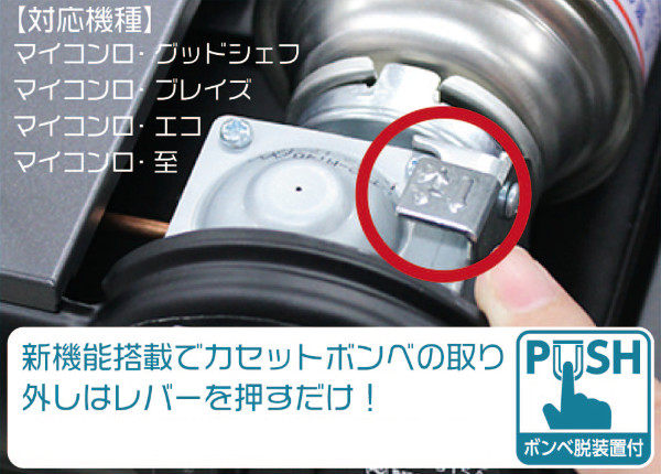 カセットボンベ内の圧力が異常上昇した場合、自動的にガス通路を遮断して火を消す圧力感知安全装置が付いています。