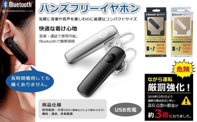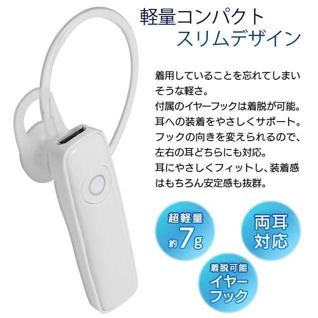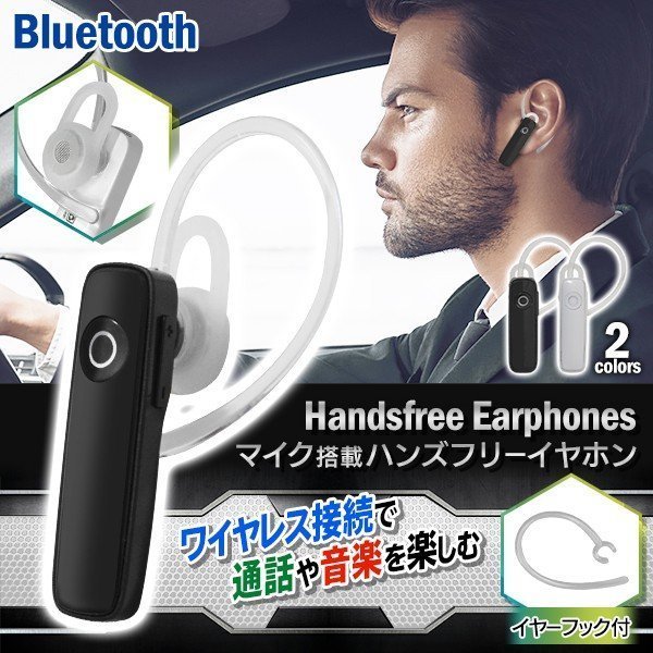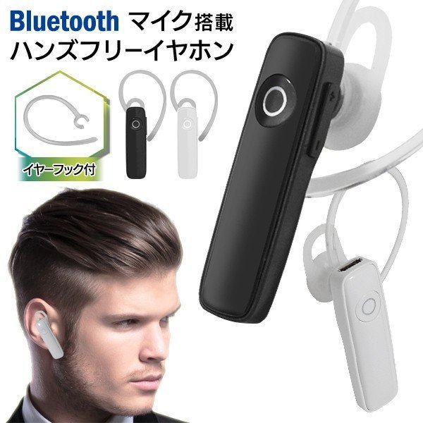 ハンズフリー イヤホン Bluetooth5.0 片耳ワイヤレスハンズフリーマイク付き USB充電 左右兼用シリコンイヤーフック付き20101992
