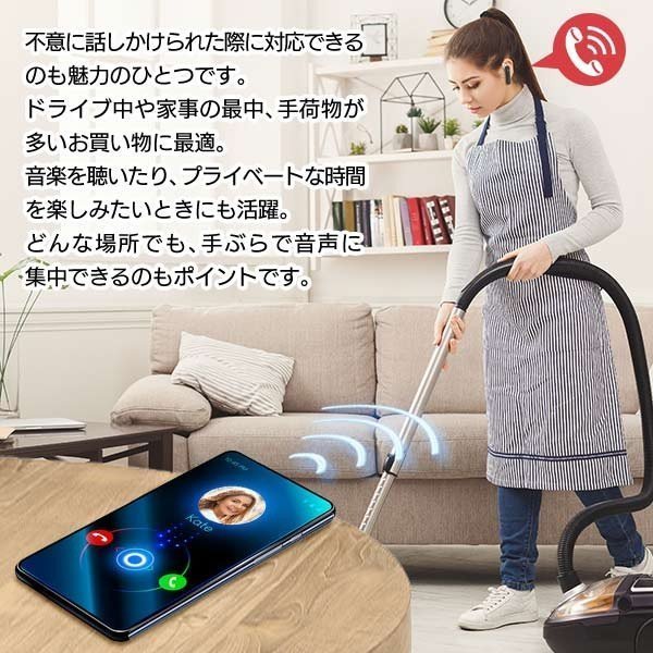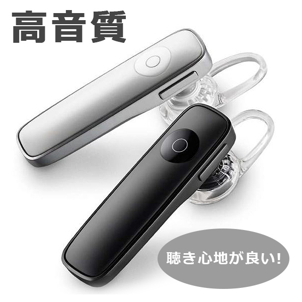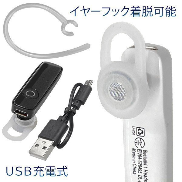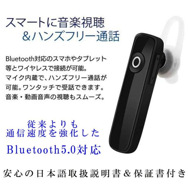 ハンズフリー イヤホン Bluetooth5.0 片耳ワイヤレスハンズフリーマイク付き USB充電 左右兼用シリコンイヤーフック付き