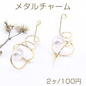 メタルチャーム ワイヤーチャーム デザインA パール付き ゴールド【2ヶ】