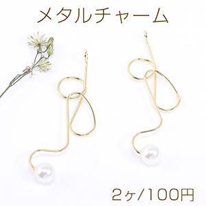 メタルチャーム ワイヤーチャーム デザインB パール付き ゴールド【2ヶ】