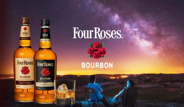 4輪の赤いバラが印象的なラベルと、数あるバーボンの中でも群を抜いて華やかな香り、なめらかな味わいをたたえた流麗な佇まいがあいまって「薔薇のバーボン」と称される〈フォアローゼズ〉。