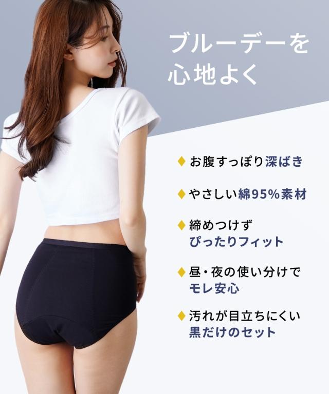綿混ストレッチシンプル深ばきサニタリーショーツ昼用2枚夜用2枚4枚組(羽付ナプキン対応)
