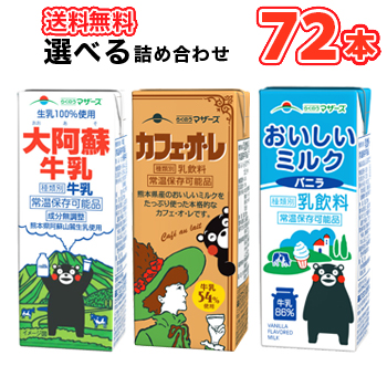らくのうマザーズ 選べる200ml紙パック 3ケース〔大阿蘇牛乳 ロングライフ カフェオレ バニラ 牛乳 選り取り よりどり〕 送料無料