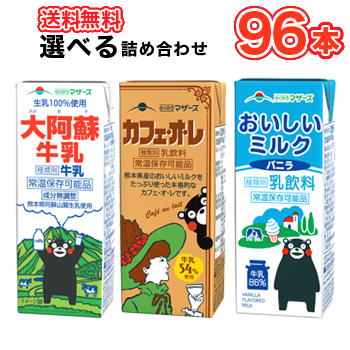 らくのうマザーズ 選べる200ml紙パック 4ケース〔大阿蘇牛乳 ロングライフ カフェオレ バニラ 牛乳 選り取り よりどり〕 送料無料