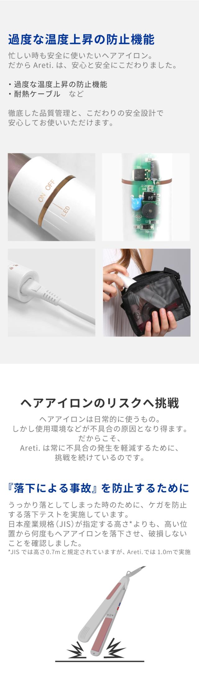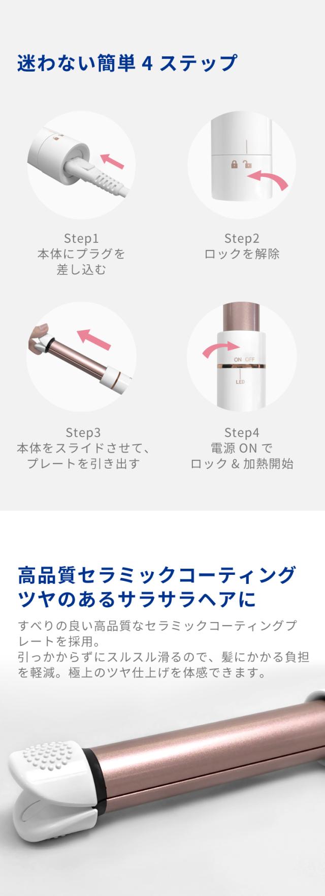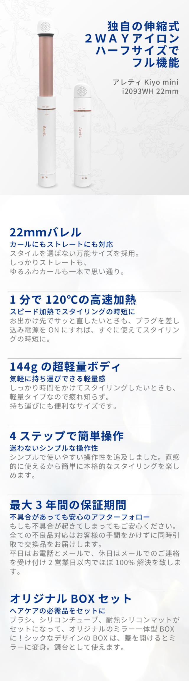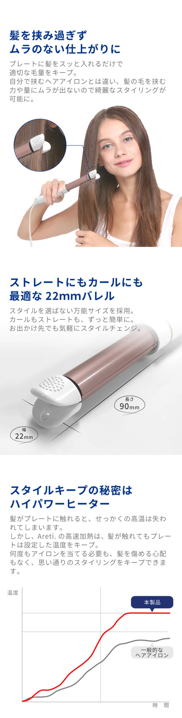 Areti アレティ 東京発メーカー 最大3年保証 22mm カールアイロン ヘアアイロン ミニ カール 伸縮式 セラミックコーティング i2093WH コテ