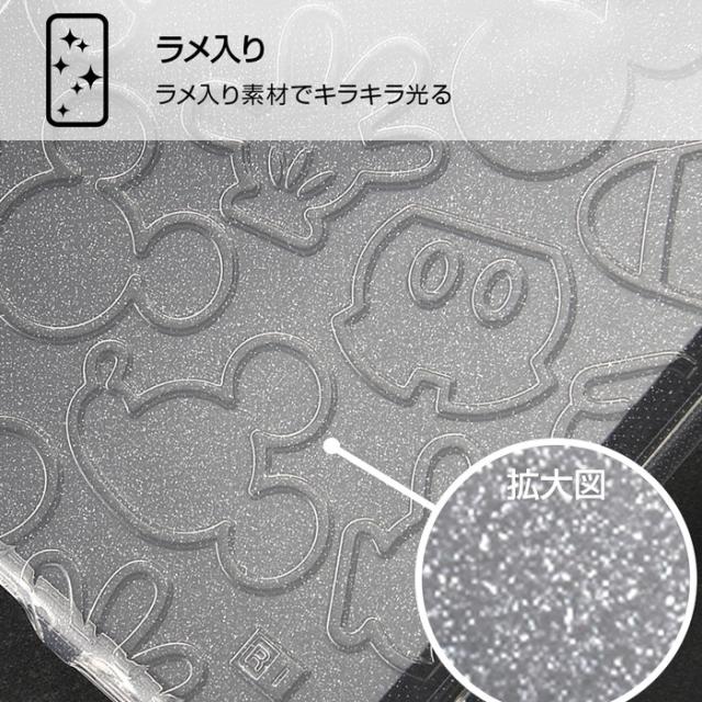 ミッキーマウスのアイコンが散りばめられた可愛いラメ入りケース。