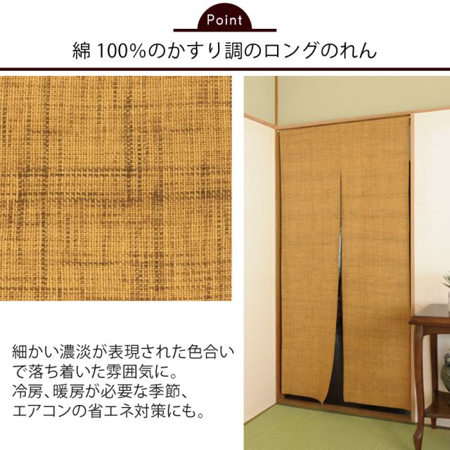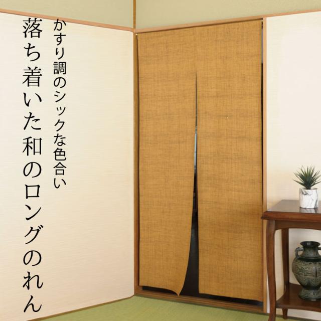 のれん 和風 ロング 85×175cm 突っ張り棒 つっぱり棒 暖簾 おしゃれ 間仕切り カーテン のれんカーテン 綿かすり調ロングのれん からし