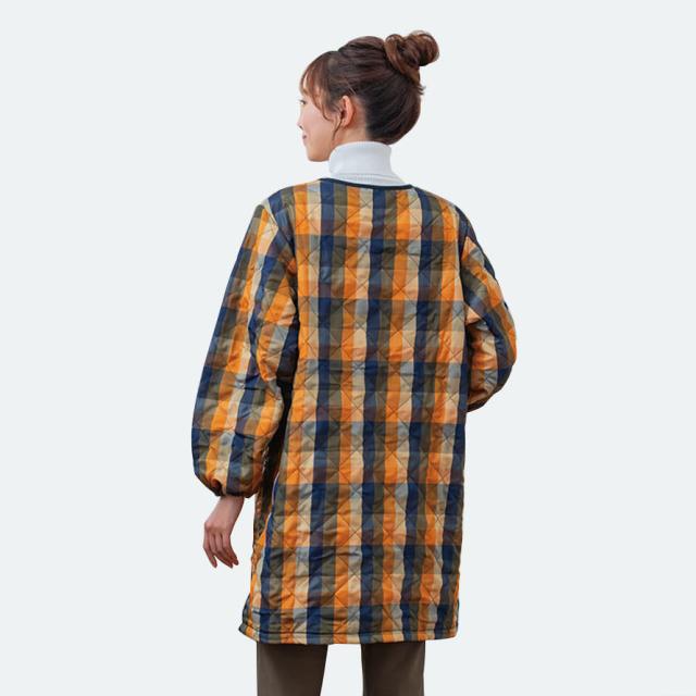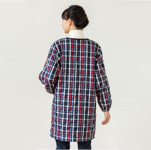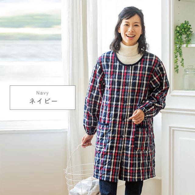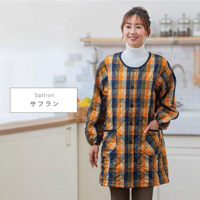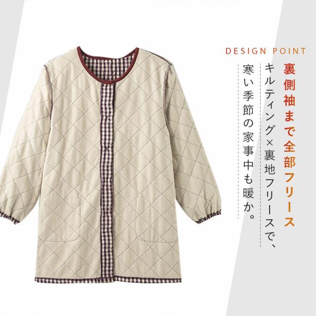 キルトと袖まで裏面フリースで、寒い冬も暖かい。自分はもちろん、お母さんにも着てもらいたいお洒落な割烹着です。
