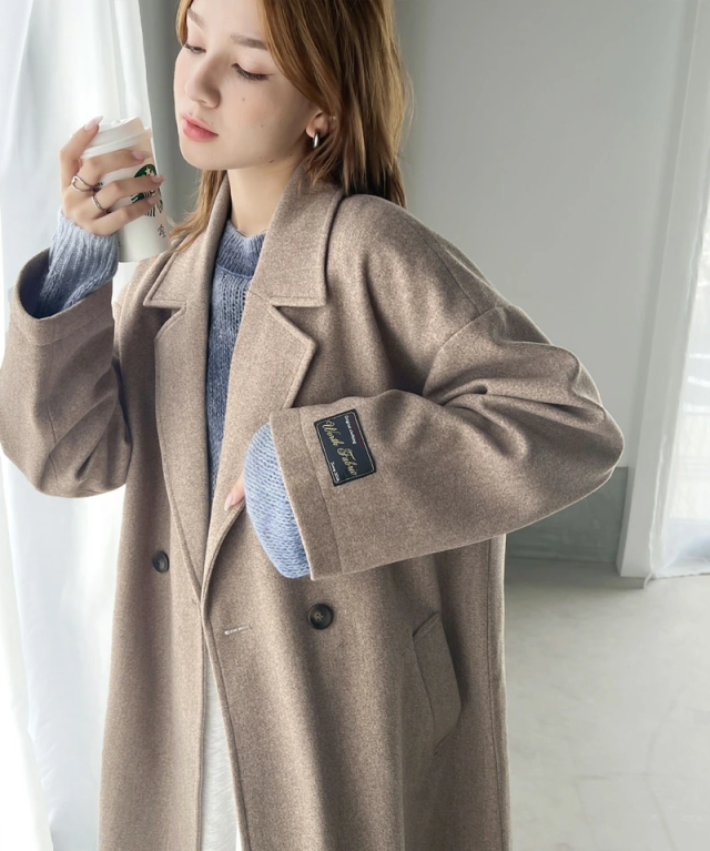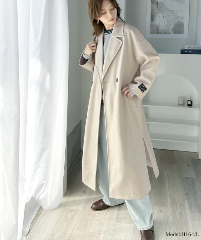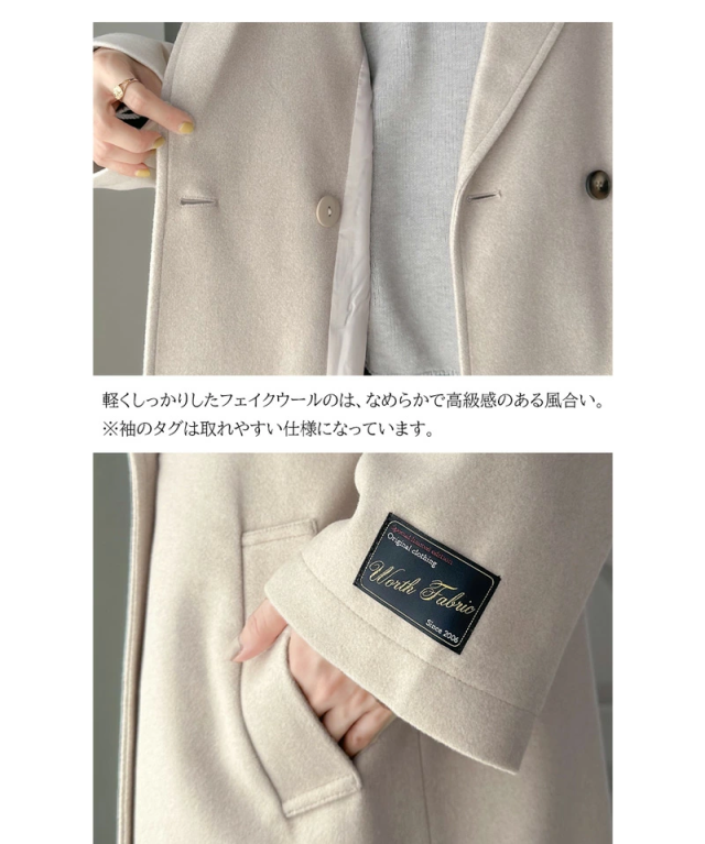 クラシカルエルフ 冬新作 体型カバー ウエストゴム UV レディース テーラードコート ベルト付 アウター コート フェイクウール 大きいサイズ ロングコート clf008
