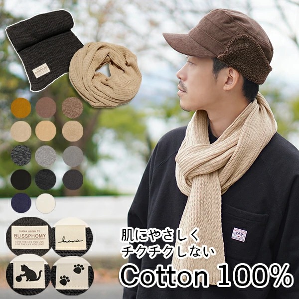 【マフラー スヌード コットン】メンズ 男性 秋冬 厚手 レディース 綿100% メール便送料無料 チクチクしない 女性 シンプル 無地 おしゃれ ブラック ベージュ グレー 男女兼用 防寒 寒さ対策 首 ネックウォーマー 秋 冬【Cotton 100% Muffler&Snood】