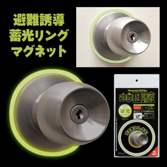 暗がりでもドアに位置が分かる優れもの!高輝度の蓄光インクを使用した避難誘導マグネットです。20分間の照射時間で60分間光る!鉄製のドアに貼っておくと停電などの緊急時や災害時もドアの位置が分かり安心。サイズ(1個):約92mm×約92mm×約0.8mm 1パック2個入◆避難誘導蓄光リングマグネット 大は12パックまでゆうパケットでお送りできます。※マグネットタイプのため、あらかじめご利用いただく場所にマグネットがつくかご確認ください。※ドアノブによっては、本製品のサイズが適合しないものもあります。ご了承ください。