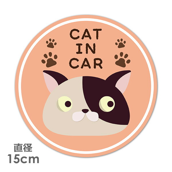 車マグネットステッカー ゆうパケット対応210円〜ネコと足跡 CAT IN CAR キャットインカー 丸型15cm