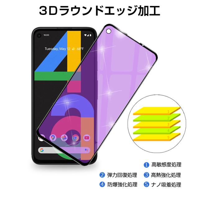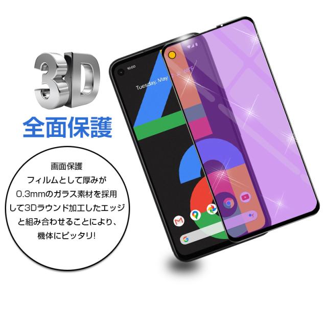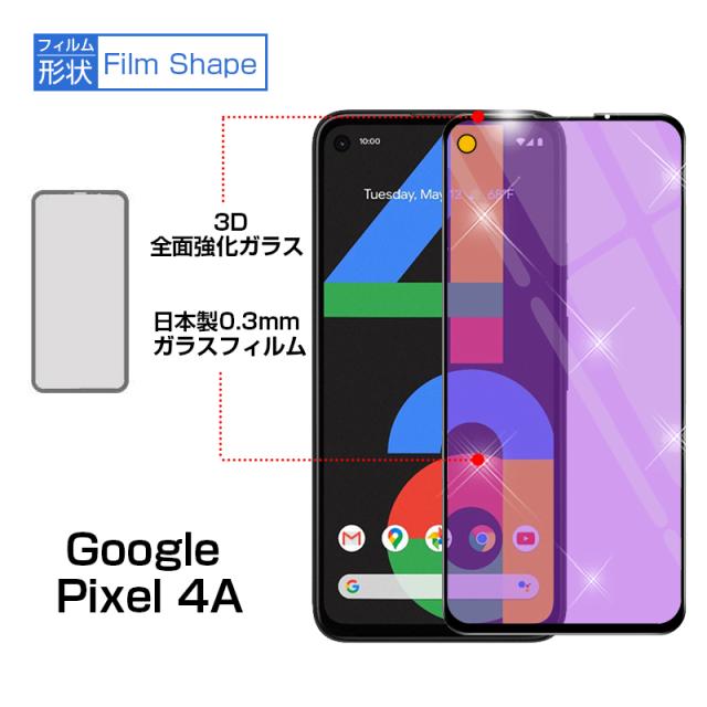 【2枚セット】Google Pixel 4A ガラスフィルム ブルーライトカット 3D 液晶保護ガラスシート 強化ガラス保護フィルム 全面保護 画面保護