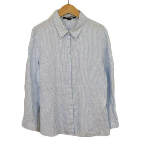 【中古】ペニーブラック PENNYBLACK シャツ ブラウス ストライプ 長袖 リネン 42 水色 ブルー レディース