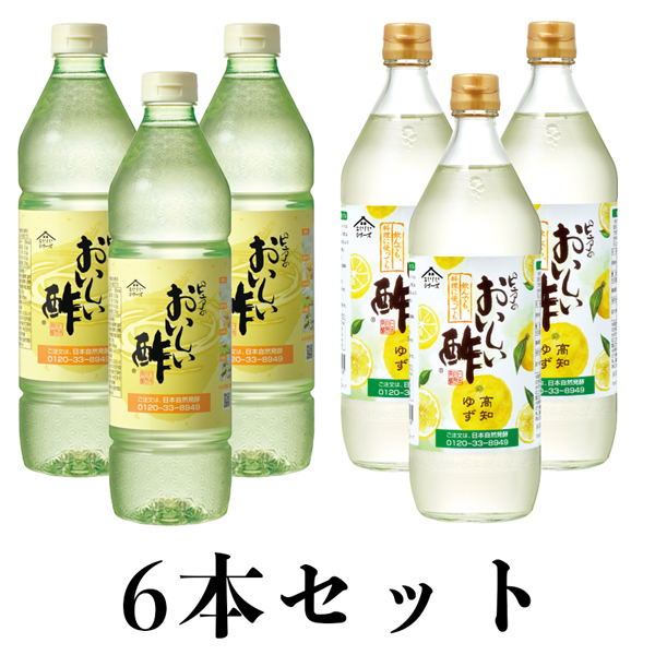 おいしい酢 955ml おいしい酢高知ゆず 900ml×各3本 日本自然発酵 計6本 お酢Lセット 酢 調味料 送料無料 冬とくキャンペーン