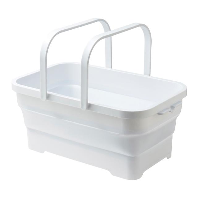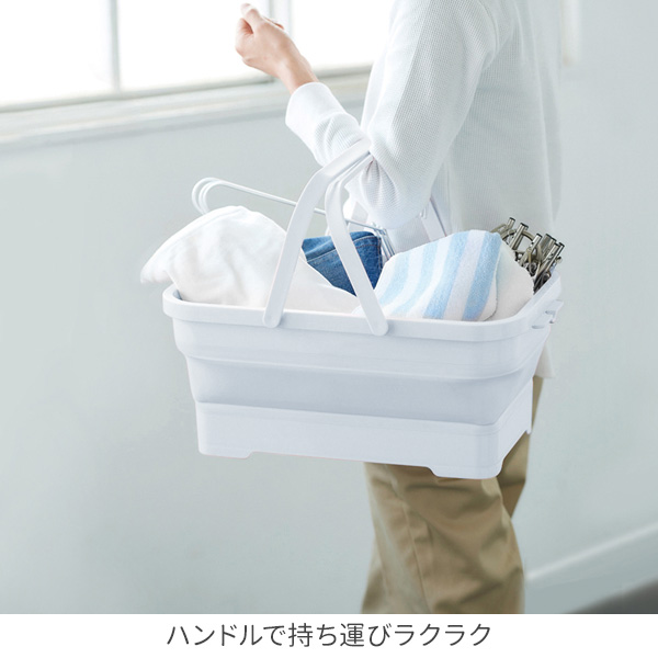 使用後は折りたたんでコンパクトに収納できる、ハンドル付きの折りたたみバスケット。