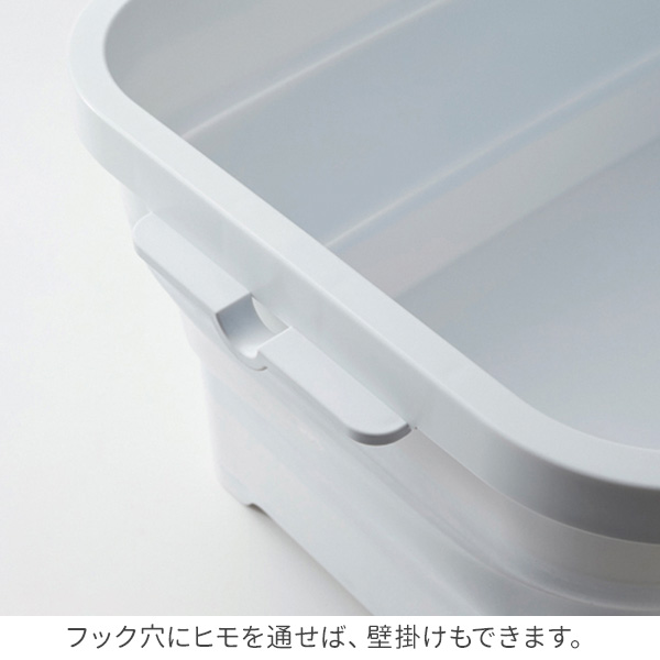 フック穴つきサイドについているフック穴にヒモを通せば、壁掛けもできます。使わない間は吊るし収納も可。