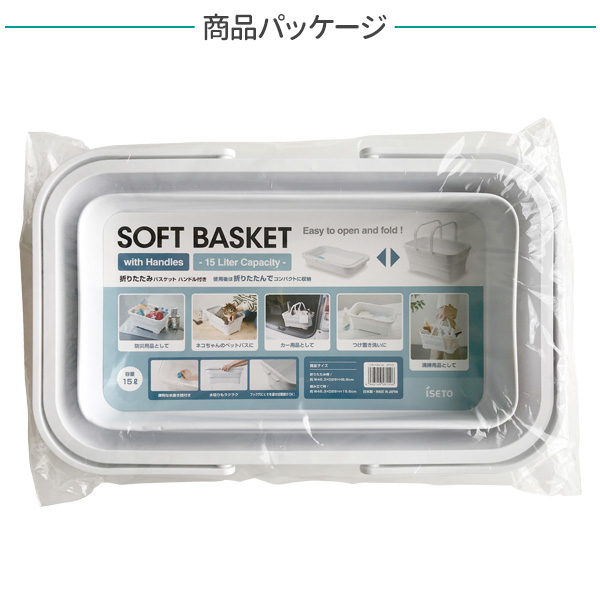 折りたたみ ソフトバスケット 15L ホワイト I-581 | バスケット 収納 たためる 容器 ペットバス バケツ 防災用