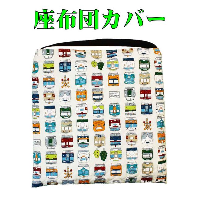 座布団ケース 座布団カバー ホワイト×電車柄(子ども用・防災頭巾入れ兼用) 入園 入学 幼稚園 保育園 小学校