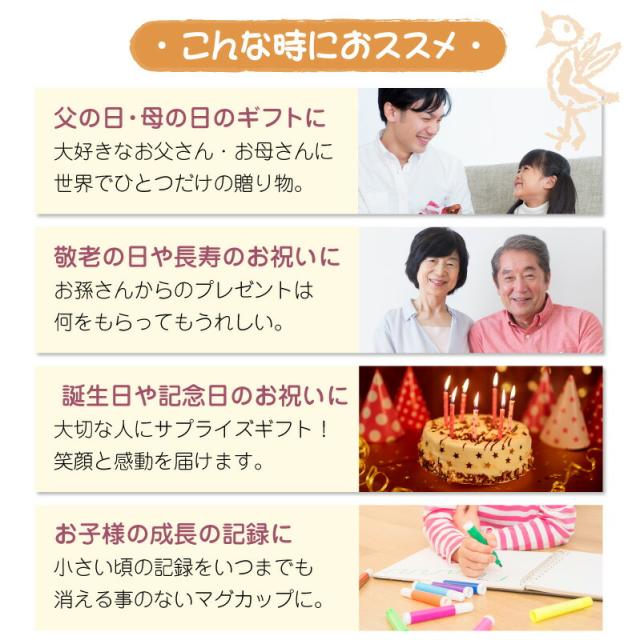 \ お子様が描いた似顔絵やお絵かきがかわいいマグカップに♪ / 一生の宝物がまたひとつ。おじいちゃん、おばあちゃんへのプレゼントにもおすすめ!