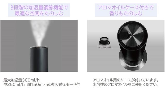 3段階の加湿量調節機能付き!最適な空間を楽しみましょう。