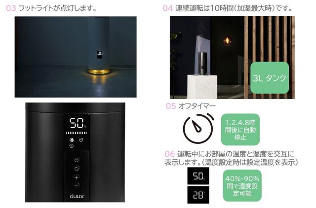 duux デュクス Beam mini ビーム ミニ 超音波式加湿器 ブラック ホワイト DXHU06 DXHU07 ツカモトエイム 加湿器 家電 大容量 3L 連続運転10時間 インテリア おしゃれ