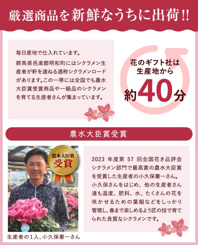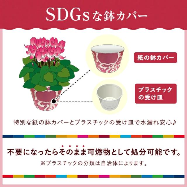 シクラメン5号鉢植え、ペーパー鉢カバー、シクラメンの育て方のしおり