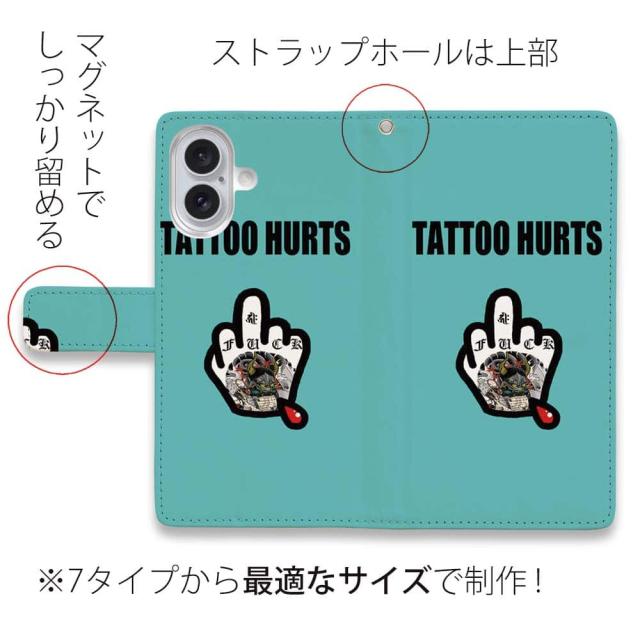 スマホケース 手帳型 カード収納 マグネット iPhone17 Pro Max iPhone Air iPhone16e iPhone16 Pro Max 16 Plus 15 Pro Max Xperia 10 VII Galaxy AQUOS ARROWS Pixel10 XL 入れ墨 刺青 タトゥー 和柄 彫姫 TATTOO HURTS ファックユー