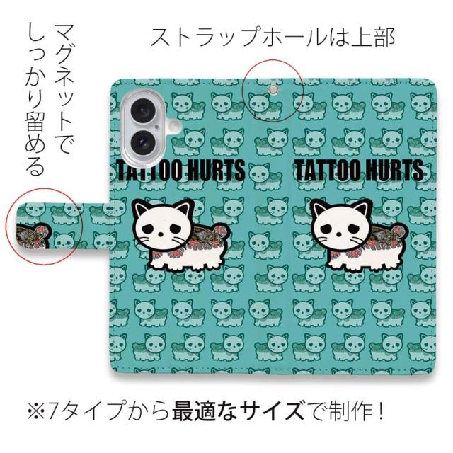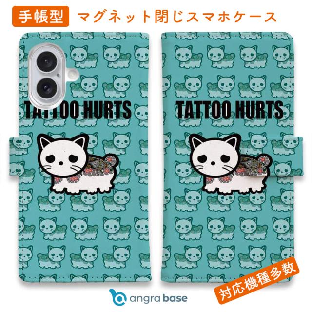 スマホケース 手帳型 カード収納 マグネット iPhone17 Pro Max iPhone Air iPhone16e iPhone16 Pro Max 16 Plus 15 Pro Max Xperia 10 VII Galaxy AQUOS ARROWS Pixel10 XL 入れ墨 刺青 タトゥー 和柄 彫姫 TATTOO HURTS 猫