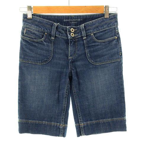 【中古】バナナリパブリック BANANA REPUBLIC パンツ ジーンズ デニム ハーフパンツ ユーズド加工 ブルー 青 0