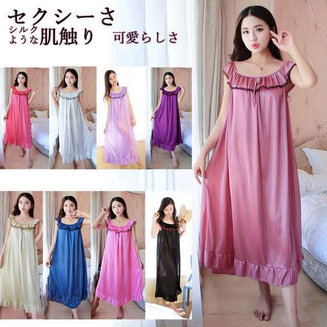 \当日発送/68 ロング丈 レディース パジャマ ルームウェア 9色 キャミソール シルク スリップ ナイトウェア 部屋着 インナーウエア ランジェリー ベビードール ワンピース ネグリジェ ロングワンピース ゆったり 可愛い かわいい セクシー 姫 赤 妊婦 マタニティー