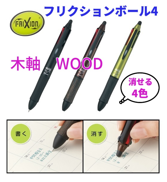 フリクションボール4 ウッド パイロット 木軸 消せる 3000円 LKFB3SEF フリクション 4色ボールペン フリクションボールペン 4色 メール便 送料無料 男性 女性 プレゼント 贈り物 記念品