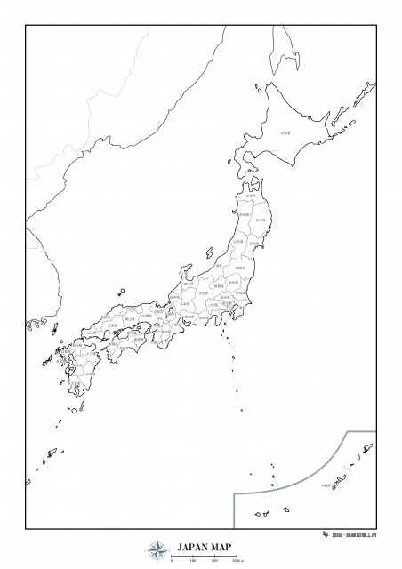 壁やデスクマットで利用できる白地図(日本地図)3点セットです。