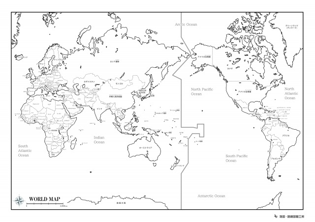 壁やデスクマットで利用できる白地図(世界地図)3点セットです。