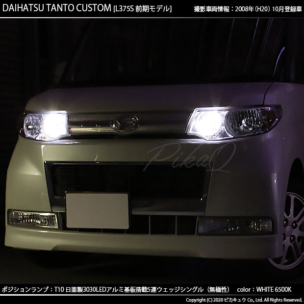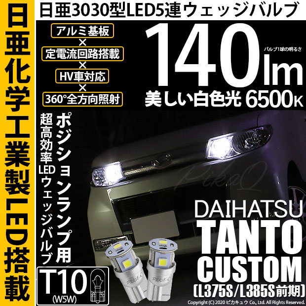 | ピカキュウ,LED専門店,LEDバルブ,LED,SMD,T10,W5W,日亜化学工業,日亜,3030,ポジション,ライセンス,カーテシ,ウエルカム,爆光,140lm,140ルーメン,DAIHATSU,TANTO CUSTOM,ダイハツ,2代目,タントカスタム,L375S,L385S,前期 |