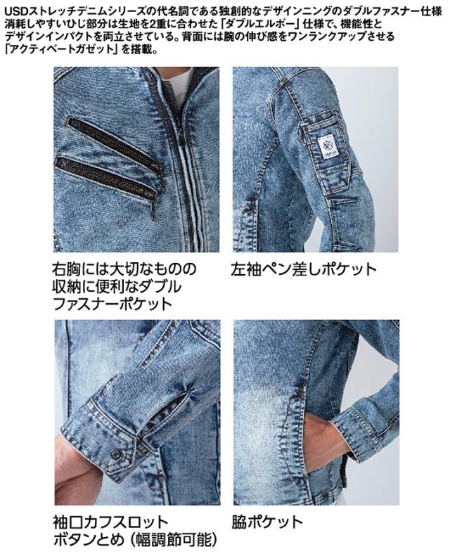 作業着 デニム イーブンリバー 長袖ブルゾン ストレッチ 強力デニム USD807 ジャケット ジャンパー 作業服 作業着 EVENRIVER