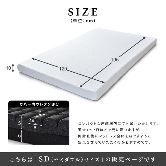 マットレス セミダブル 低反発マットレス 10cm 竹炭入り ノンスプリング 腰痛対策 ウレタンマットレス ブラックサイレンス プレミアムカットSD プレゼント tm